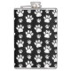 Paw Pattern, Paw Prints, Dog Paws, Black and White Hip Flask