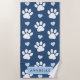 Paw Pattern, White Paws, Blue Hearts, Your Name Beach Towel