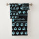 Paw Print Blue Glitter Monogram Name Cat Dog Paw Bath Towel Set