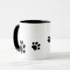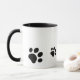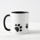 Show your love for your furry friend with this simple paw print mug! Featuring two classic black paw prints on a white background, this sturdy ceramic mug boasts a stylish black handle and interior. Perfect for coffee, tea, or any beverage – a great gift for any dog or cat lover.