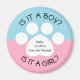 This magnet displays a white paw print on a blue and pink background and the text "Is it a boy? Is it a girl?" These magnets are great for paw print themed, dog themed, cat themed, or animal themed gender reveal parties.