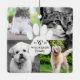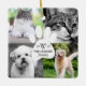 Celebrate the magical and festive holiday season with our custom holiday pet photo collage ornament. Our modern elegant holiday design features a modern and minimalistic four photo holiday collage grid layout with a modern white pet paw print design placed in the middle of the four square photo collage layout. Customize with your family monogram, year and name.