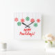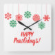 Paw print snowflakes in red and green colour square wall clock