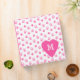 Personalized monogram binder with cute pattern of cat and dog paws prints and heart on pink and white.