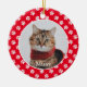 Personalized cat name and photo paw prints pattern Christmas Tree Ornament - Red.