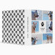 Stylish and clean pet binder with a collage of six dog photos around a black paw print and your dog's name and the year. The back features a chic paw print pattern in black and white.