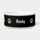 Paw prints large dog bowl with beige paws and black background and a place you can add your dogs name making this a classy pet bowl design. Use yours for a water dish, food dish, or catchall for all your doggy treats.