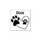 Cute paw prints over a heart outline with custom pet name rubber stamp. This nice stamp will help you show your love for your pet dog or cat and add nice imprints to your crafts and art projects. Leave as it is or personalize by replacing the sample name Dixie with the name of your pet. You can also add an additional name if space allows it.