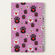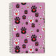 Show how much you love your fur baby with this pawprint design! It has black and white paws with red hearts on a pink background.