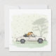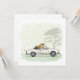 Invitation map wedding with unique illustration of the bride in a white Karmann Ghia in a Mediterranean atmosphere