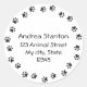 Address labels with a round border of black dog or cat paw prints. Customize with your personal contact information and use them as return address labels on the back of envelopes or on gift packages. Or stick them in books or on other belongings to identify them as yours.