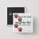A button that can be pinned on clothing and worn daily to remind people to adopt a pet from a shelter.
