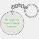A key chain with our logo on one side and the saying "My dog is my favorite family member." on the other side.