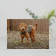 Cute pet-themed Christmas card featuring your pet's horizontal photo with "Pawsitively Merry" in a handwritten gold foil script overlay. Personalize the front of the pet Christmas card with your custom greeting, family name, and the year. The card reverses to display a navy and white paw print pattern.