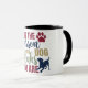 A colourful, text-based graphic on a black background featuring the motivational quote 'Be the Person Your Dog Thinks You Are,' decorated with hearts, a paw print, and a blue dog silhouette.