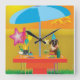 It’s always party o’clock with this whimsical and colorful wall clock featuring a festive dog-and-cat duo! Decked out in party hats and sunglasses, they’re enjoying cupcakes, cocktails, balloons, and confetti under a giant beach umbrella—complete with vibrant colors and playful details. A celebration of fun and friendship, this clock brings joyful energy to any space, making it a great conversation piece for pet lovers and anyone who believes in living life playfully.