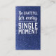 Spread kindness with this beautiful “Pay It Forward” business card. The front features deep navy blue faux glitter and inspiring white text: “be grateful for every single moment.” The back shares a message of compassion and encouragement in matching royal blue script and block font. A perfect way to pass on a random act of kindness and inspire gratitude in your community..