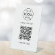 This simple white pedestal style business sign designed as a clean scan to pay display that works across retail counters, cash wrap areas, pop up shops, salons, cafes and event stalls. The layout uses a modern minimalist design with plenty of space so your QR code and brand details stay clear and easy to read. The template allows you to add your company logo or a small graphic or photo, your QR code link and any custom text you need for quick payment, tipping, ordering or contact access. The simple uncluttered design fit seamlessly into almost any brand style from luxury boutiques to local makers. Customers can scan instantly which helps speed up checkouts and reduces friction for both small and large businesses. A versatile and modern sign that adapts easily to your business needs.