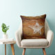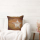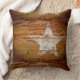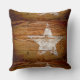 Coussin rustique primitif en bois brun avec une étoile peinte en blanc. Customisez avec vos propres photos, noms ou mots.