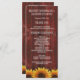Country Red Wood Rustic Sunflower Wedding Programmes - présente un arrière - plan en bois de grange rouge en détresse avec des tournesols au fond. Le dos est décoré de la même façon.