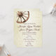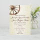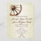 Un pays rustique et délabré tournoie fleurit un ensemble de faire-part de mariage tan avec une roue de wagon dans le coin inférieur. Entièrement personnalisable avec vos propres détails.