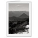 Une photo de paysage noir et blanc de collines ondulantes et de montagnes à perte de vue. Des rangées d'arbres ici et là. Et quelques taches de neige subsistent encore au début de l'été. Copyright ©2023 Kimberly J Tilley. www.zazzle.com/store/developingnature