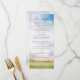 Menu mariage romantique et rêveur, avec un paysage aquarelle avec nuages.