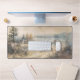 Ce design de tapis de bureau présente un paysage colonial avec une maison de campagne. Le design est subtil, avec des couleurs douces et muettes.