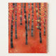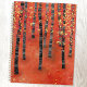 Un paysage moderne abstrait peinture d'un bouleau ou d'un peuplier de peuplier faux-tremble en automne dans les tons riches de rouge, orange et jaune. Art original de Nic Squirrell.