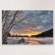 Ce puzzle est doté d'un magnifique paysage hivernal avec coucher de soleil, rivière et neige. Idéal pour les fêtes et les fêtes de Noël.