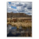 Un ciel dramatique se reflète dans l'eau calme avec les plantes et les arbres des zones humides.