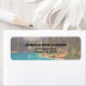 Étiquettes de adresse avec une photo de paysage pittoresque du Nord comme toile de fond. Un lac aux couleurs turquoise avec une forêt de pins en arrière - plan et un ciel brumeux lui donnant une qualité mystique magique.