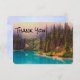 Un carte de remerciements avec une photo pittoresque de paysage du nord. Un lac aux couleurs turquoise avec une forêt de pins en arrière - plan et un ciel brumeux lui donnant une qualité mystique magique.