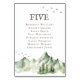 Cette carte de numéro de table est élégante et très utile pour aider les clients à savoir où s'asseoir. Conception de l'aquarelle paysage peinture des arbres, des oiseaux volants et des montagnes dans l'arrière - plan. Illustration nature calme et sereine avec pins et silhuettes d'oiseaux volants. Ajoutez les noms de vos invités à chaque carte pour créer un affichage unique des numéros de table - que ce soit en tant que bannière ou placé dans des porte-cartes individuels sur chaque table. Remarque : les cartes ne sont pas percées ou perforées ; les images affichées ne sont qu'à titre d'inspiration.