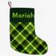 Pea Green Plaid Monogram Small Christmas Stocking
