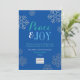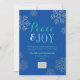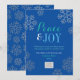 Modern and colourful corporate holiday greeting card features custom Peace & Joy text, a seasonal message, and a company logo that can be fully personalized for your business. A pattern of platinum grey coloured snowflakes provide accent this modern seasonal design in vibrant wintery shades of royal blue, mint green, and white - which can all be modified.