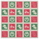 Christmas design with Christmas symbols in colourful squares and with snowflakes decoration
