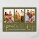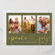 Peace and Joy Modern Gold Heart Script 3 Photo Foil Holiday Card