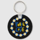 Show your support for Ukraine with this keychain featuring a modern white flower wreath that has "Peace and Love" text in blue and yellow Ukraine flag colors on black background.