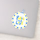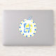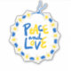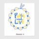 Show your support for Ukraine with this vinyl car decal featuring a modern white flower wreath that has "Peace and Love" text in blue and yellow Ukraine flag colours on black background.