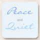 Want some peace and quiet? Let everyone know with this tranquil "peace and quiet" slogan in shades of light blue an ice blue background.