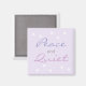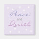 Want some peace and quiet? Let everyone know with this tranquil "peace and quiet" slogan in gentle shades of lilac and mauve on a pale lavender background decorated with a delicate white blossom motif.