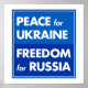 Stand with the people of Ukraine and Russia. Demand peace for the people of Ukraine and freedom for the people of Russia. Vladimir Putin must go. Show your support for the people of Ukraine. And show your support for the people of Russia who have aspirations for freedom and democracy. In the Peace for Ukraine Freedom for Russia graphic design, the two blue colours come from the Ukrainian flag and the Russian flag. Visit the ElectricPopSpot shop and browse all our awesome pop art designs! ElectricPopSpot - Elevating Pop Culture into Pop Art!