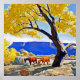 Maynard Dixon was a self-taught artist whose powerful compositions focused on the southwest cultures and landscapes in the early nineteenth century. This is called “Peace in October” and depicts two horses grazing under an autumn tree.