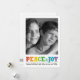 Send holiday cheer this season to your loved ones by showcasing your favourite photo with this simple card from PiPo Press. The greeting "Peace & Joy" is featured in colourful rainbow chalk letters. This design is available with a coordinating pattern or multiple photo opening variations on the back.