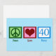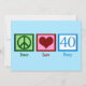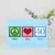 Peace Love Forty birthday card. A pretty peace sign, heart, and the number 40 in beautiful blue for a fortieth birthday party.