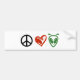 A black peace symbol, a red scribbled heart shape, and a green cartoon alien face. Show your love of all things sci fi and out of this world with this cute design.
