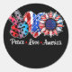 Peace Love America Sunflower American Flag Funny Classic Round Sticker