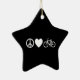 Peace, love and Bicycles shapes in black and white. Add personalized text to create your own bike inspired Christmas tree ornament. Delete the black graphic and choose your favourite background colour.