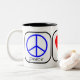 Peace, Love, and Doughnuts Two-Tone Coffee Mug